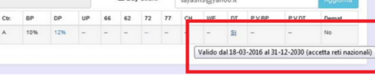 Riconosciamo i casi dalla schermata contratti, dove vediamo la data listino e se accetta reti Nazionali:
