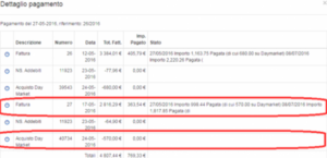 Significa che nei pagamenti troveremo solo la fattura a rimborso alla quale viene detratta la fattura di Acquisto AZIENDA1 Market: