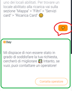 - Se il cliente non è soddisfatto della risposta lo indica cliccando l’icona del pollice verso
