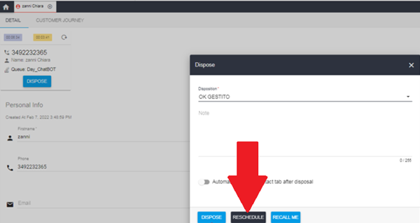 - Se l’utente chiede di essere richiamato più tardi, usate RISCHEDULA.