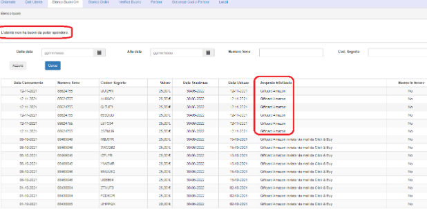 In questa sezione è possibile visualizzare i buoni disponibili.
