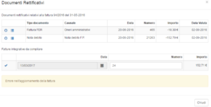 Compilando i campi “Numero” e “Data” e cliccando su “Salva” si genera la riga corrispondente nell’elenco dei Documenti Rettificativi.