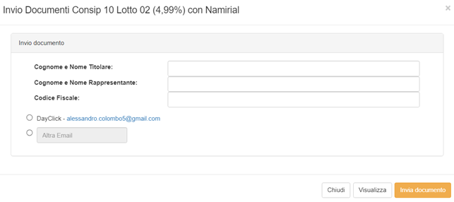 È possibile inviare il contratto con firma digitale previa la compilazione dei campi richiesti.