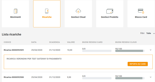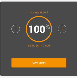 - La rotella che si trova in “Gestisci Cloud” indica la % di buoni che si possono spostare su cloud o su Card alla prossima ricarica.