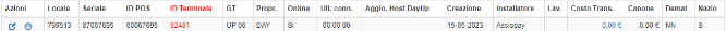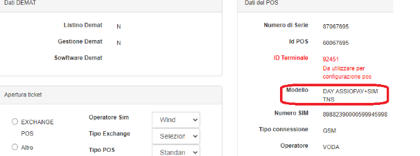 Se il POS Assiopay ha una SIM intelligente, lo visualizziamo nelle azioni del POS:
