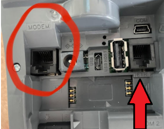 Se si tratta di POS con connessione Ethernet verifica che il cavo sia correttamente collegato e che sia collegato alla porta Ethernet indicata dalla freccia: