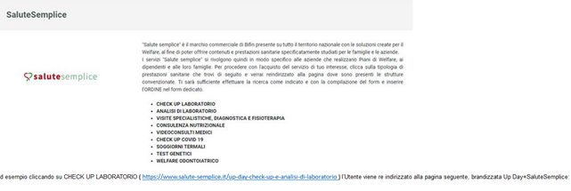 Offre diverse tipologie di prestazioni sanitarie. L’utente viene reindirizzato al sito del partner per selezionare la struttura e la prestazione, generando un Pre Ordine.