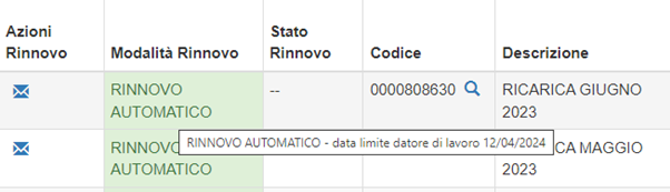 Rinnovabile: il rinnovo non è automatico ma è presente il tasto [Rinnova] per poter confermare il rinnovo