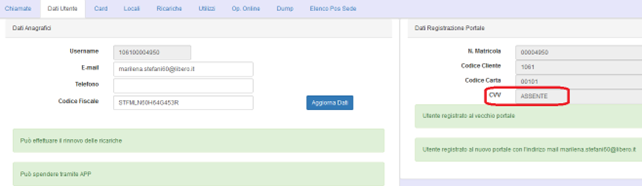Se l’utilizzatore non trova il CVV ma è indicato come presente, si apre un ticket
