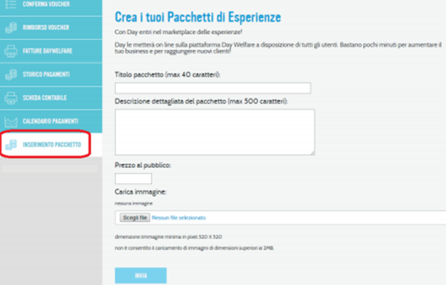 - Inserire i pacchetti nell’apposita sezione